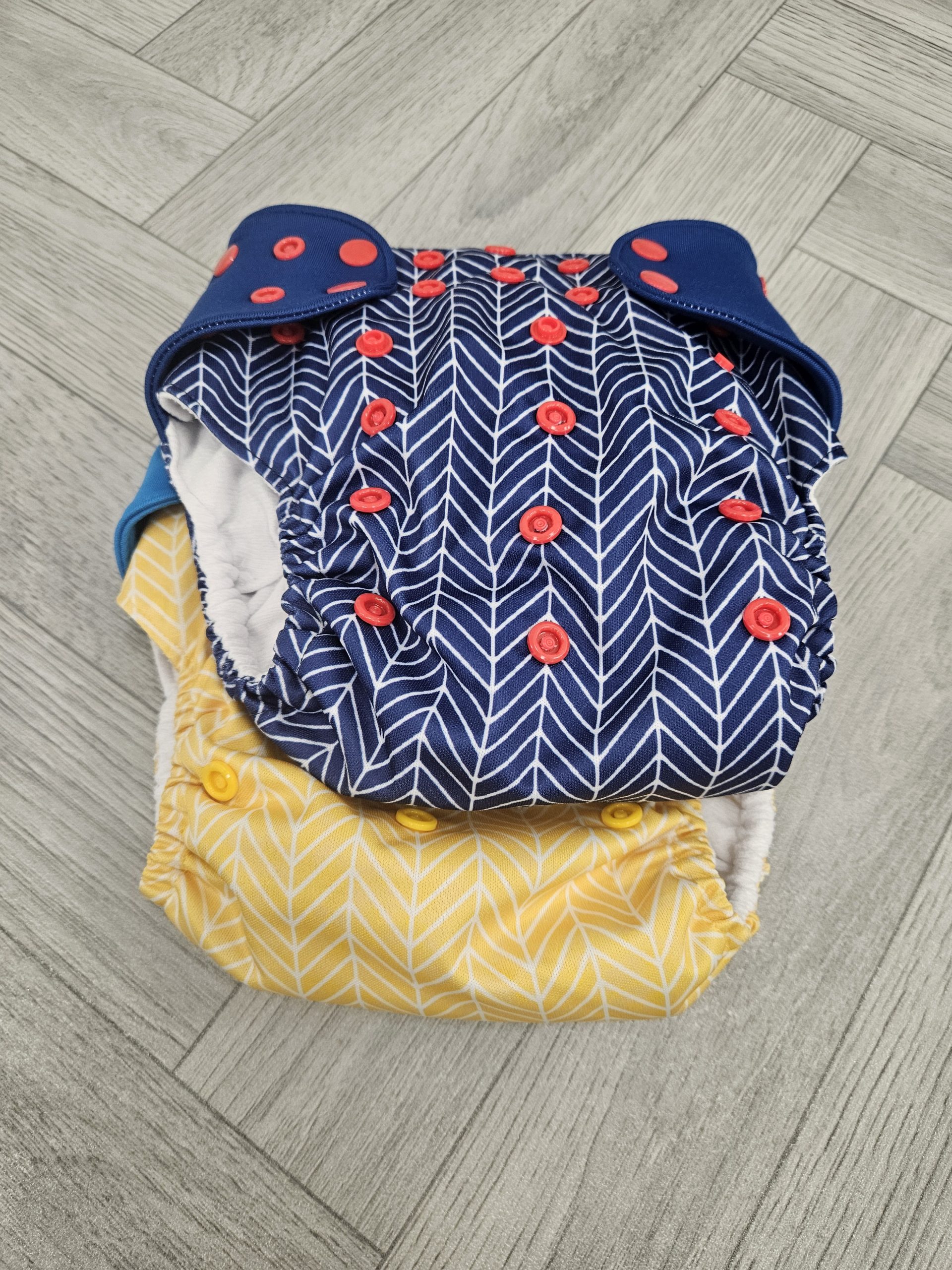 A pair of Little Love Bum pocket nappies